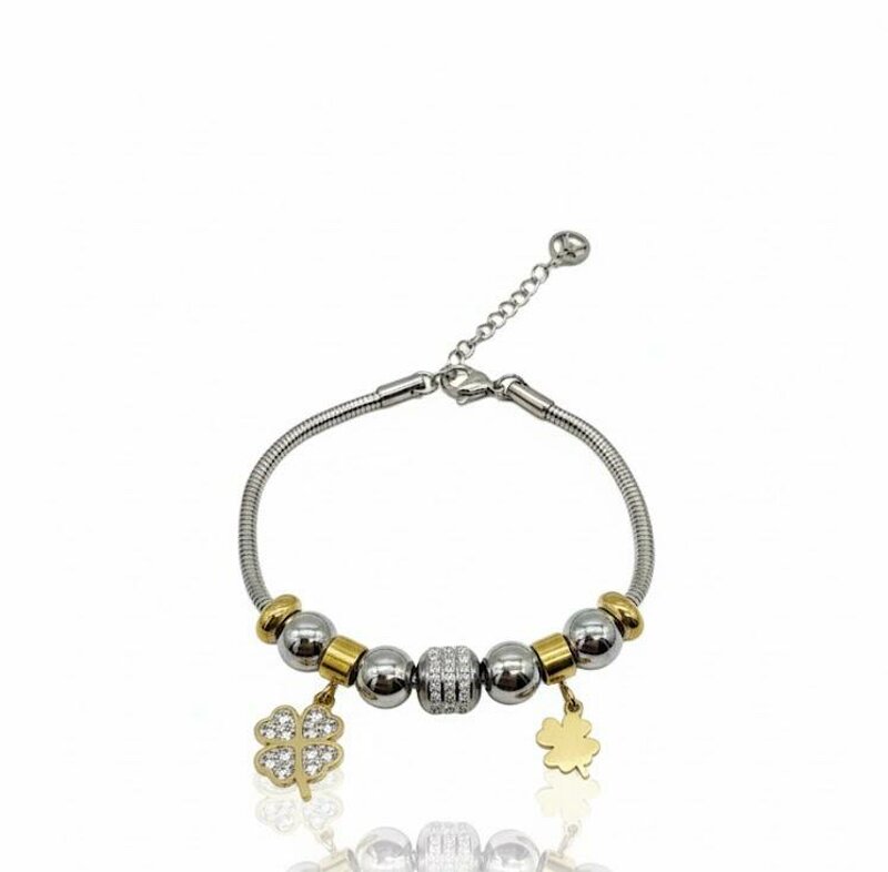 Bracciale con catena coda di topo e ciondoli pendenti a forma di quadrifoglio